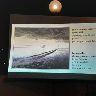 Un grazie sentito a tutti coloro che hanno partecipato al lancio di Morire come una poesia. La ballata di un soldato-bardo in tempi di guerra (EN/IT). La Terrazza del Fico affacciata sulla Baia del Silenzio a Sestri Levante ha fatto da magica cornice alla lettura di una versione "distillata" della ballata, arricchita dal jazz di Alberto Barattini, dalle immagini evocative di Stefano Gulmanelli e dal contributo critico del Prof. Massimo Bacigalupo. Si ringrazia il Sistema Bibliotecario del Comune di Sestri Levante.